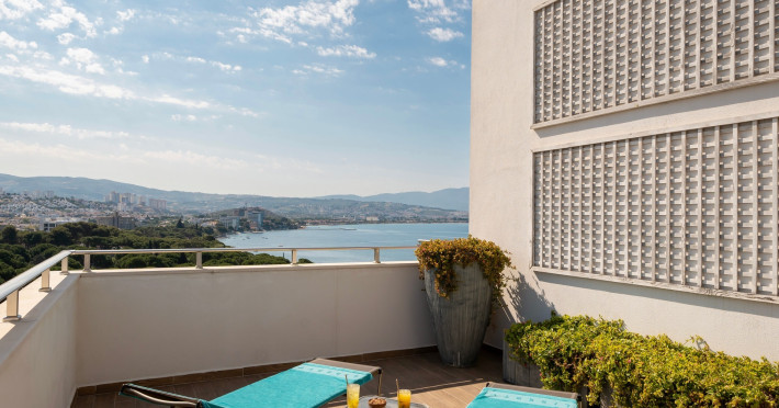 Suita Junior cu vedere la mare: dormitor si living, vedere directa la mare