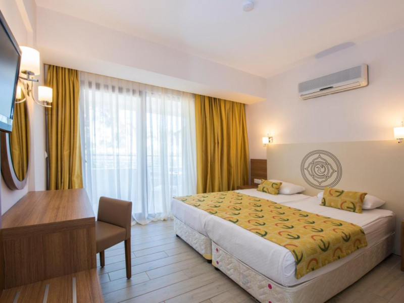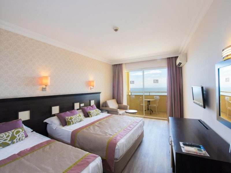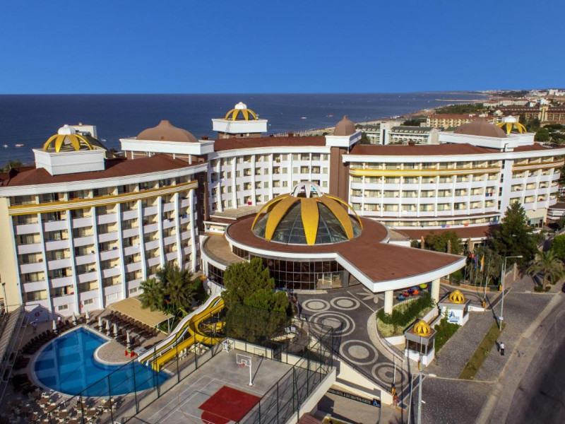 Hotelul Side Alegria se află la 55 km distanță de aeroport și la 60 km de Antalya, beneficiind de o plajă privată de 70 de metri și oferind o atmosferă relaxantă.