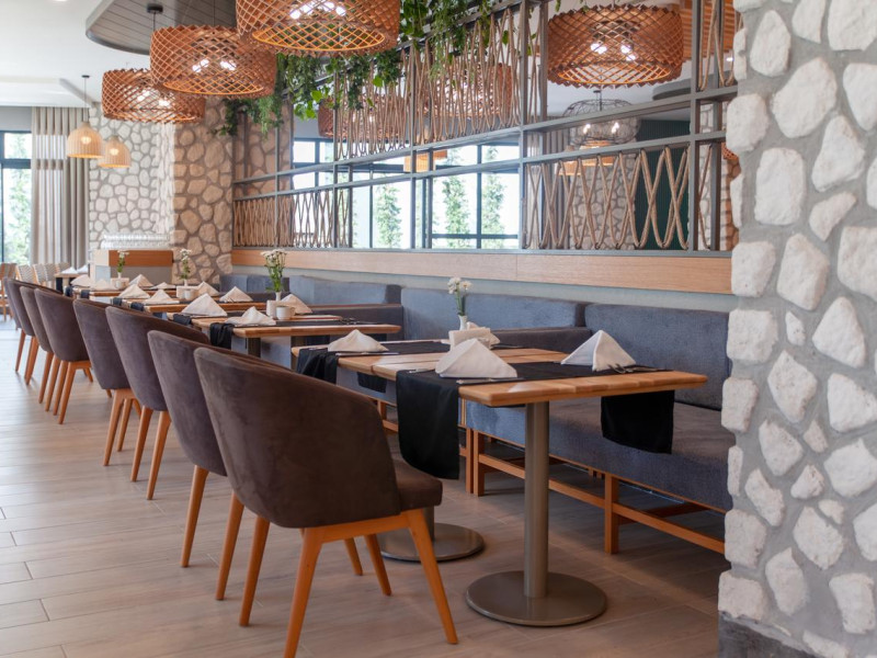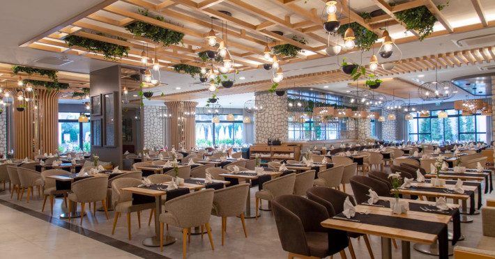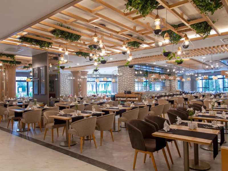 Hotelul pune la dispozitia turistilor restaurant principal, 2 restaurante a la carte, 3 baruri, 2 piscine exterioare, piscina interioara, 3 tobogane, salon TV, coafor, magazine.