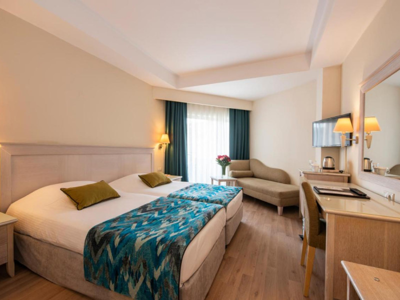 Hotelul are un total de 228 camere repartizate in cladirea principala si in cladirile anexe.Toate camerele au baie privata cu cada, dus, uscator de par, aer conditonat split, mini bar , seif (contra cost), TV satelit si canale de muzica, balcon.