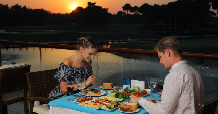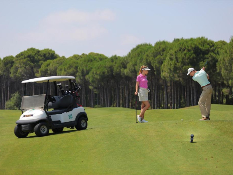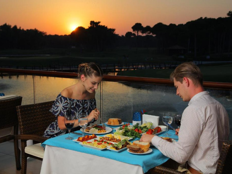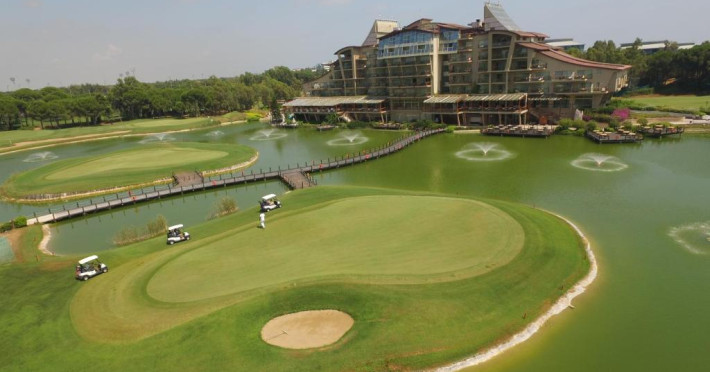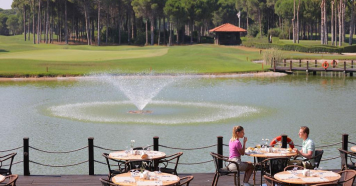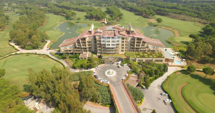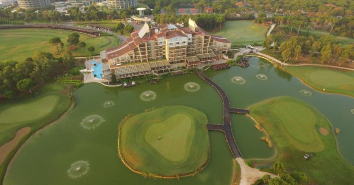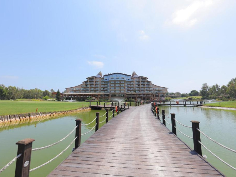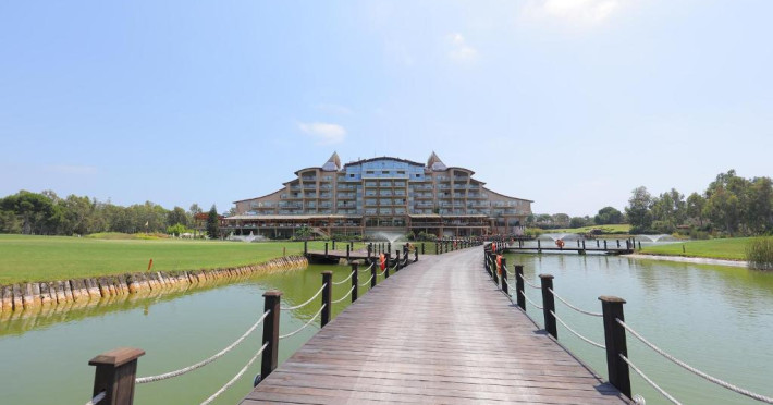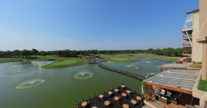 Hotel Sueno Golf Belek este inconjurat de un lac si pune la dispozitie 2 terenuri de golf de campionat, cu 18 găuri. Este amplasat la 400 de metri de plajă si include 3 terenuri de fotbal.