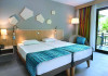 Localizare: Situată pe un promontoriu luxuriant, chiar lângă o superbă plajă cu nisip și pietriș, lungă de 180 de metri, de pe Riviera Turciei, TUI BLUE Palm Garden este un loc uimitor de înot, cu fundul mării în pantă abruptă și ape ceruleene sărutate de soare. Dacă aveți chef de aventură în orașele locale, puteți face o plimbare cu un dolmus (microbuz public) până în orașul divers Manavgat (12 km) sau în satul antic Side (17 km). Cel mai apropiat aeroport este Antalya, la aproximativ 70 km distanță, cu un timp de transfer de aproximativ 60 de minute. Locurile de parcare sunt disponibile gratuit în fața hotelului. Hotel situat direct pe plaja cu nisip și pietriș, cu o pantă abruptă în apă Facilitati copii: Divertisment în timpul zilei și seara Program pentru copii în Kids’ Club 6 zile/săptămână, adaptat diferitelor grupe de vârstă Teens’ Lounge în timpul vacanțelor școlare Hammam și saună - gratuit; masaje si tratamente - contra cost Activitati si sporturi: Boccia, Minigolf, Sah de gradina, Slackline, Trambuline, Trambulina de apa cu tobogan, Tenis de masa, Tenis, volei pe plajă, Activitati la piscina, Turnee Facilitati camere: Camerele duble Duo: Camerele complet renovate au fiecare aproximativ 21 de metri pătrați de spațiu și un balcon aerat. În unele camere, patul dublu este format din două paturi de o persoană separate, care pot fi demontate dacă este necesar. Aerul condiționat poate fi reglat individual pentru acea temperatură ideală. La sosire, veți găsi o sticlă de apă răcoritoare în frigider. Sistemul de divertisment are un televizor cu ecran plat cu conexiune prin satelit, difuzoare Bose Bluetooth și WiFi. Patru dintre camerele duble Duo sunt complet accesibile cu scaunul cu rotile.