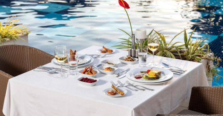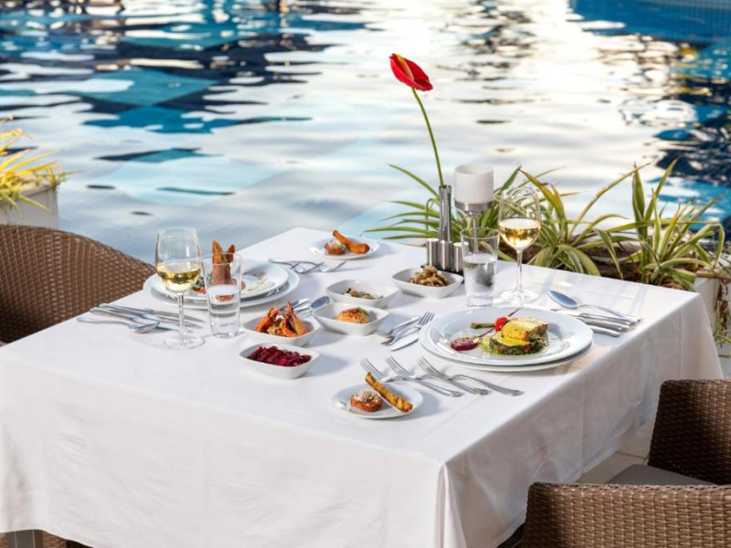 Micul dejun este servit zilnic in stil bufet. De asemenea, vă puteți bucura de preparate din bucătăria internațională și locală la restaurantele hotelului. Barurile servesc diverse cocktailuri și băuturi.
