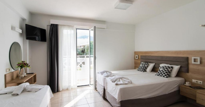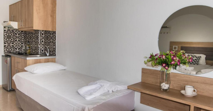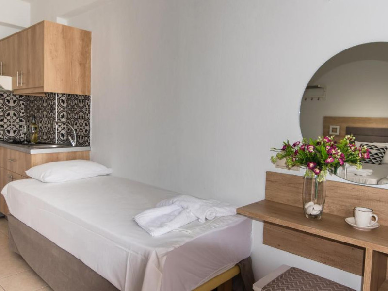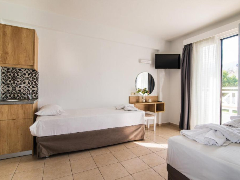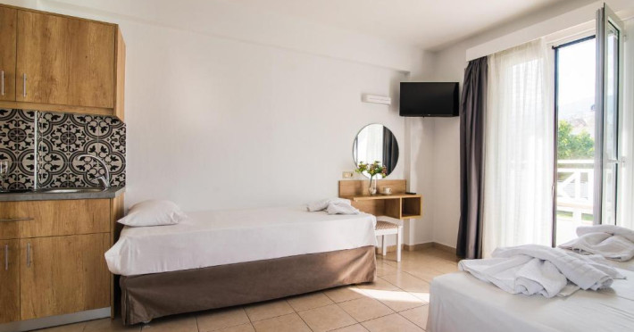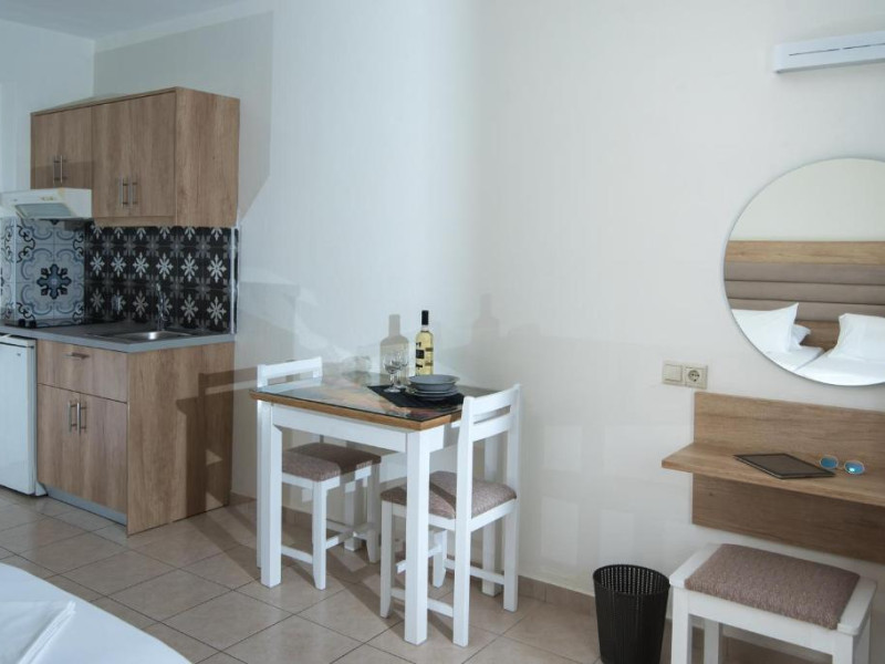 Unitățile de cazare au pardoseală de gresie și includ o chicinetă complet utilată, cu un frigider, o zonă de luat masa, un televizor cu ecran plat cu canale prin satelit, precum și baie proprie cu duș și un uscător de păr. Oaspeții au la dispoziție de asemenea o plită și un ibric electric.