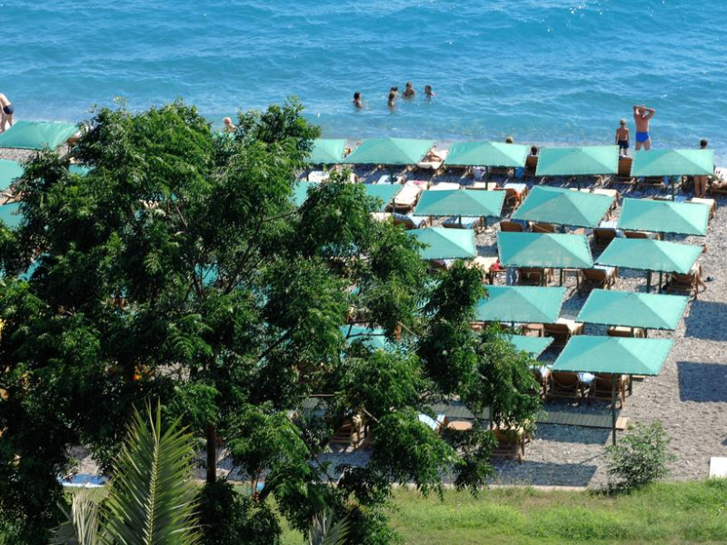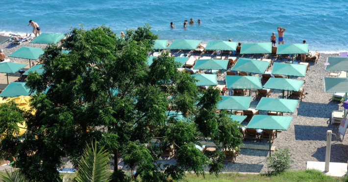 Proprie, nisip/pietris. Bar la plaja – contra cost.