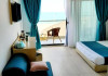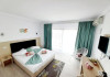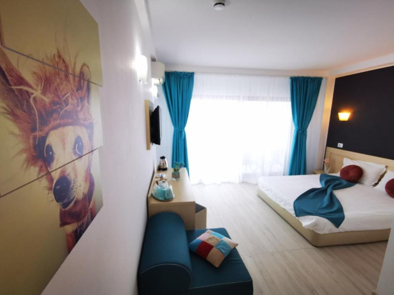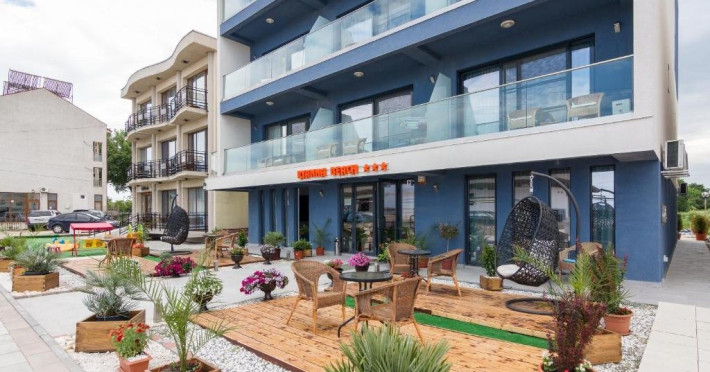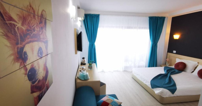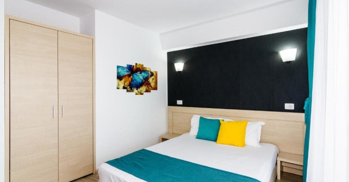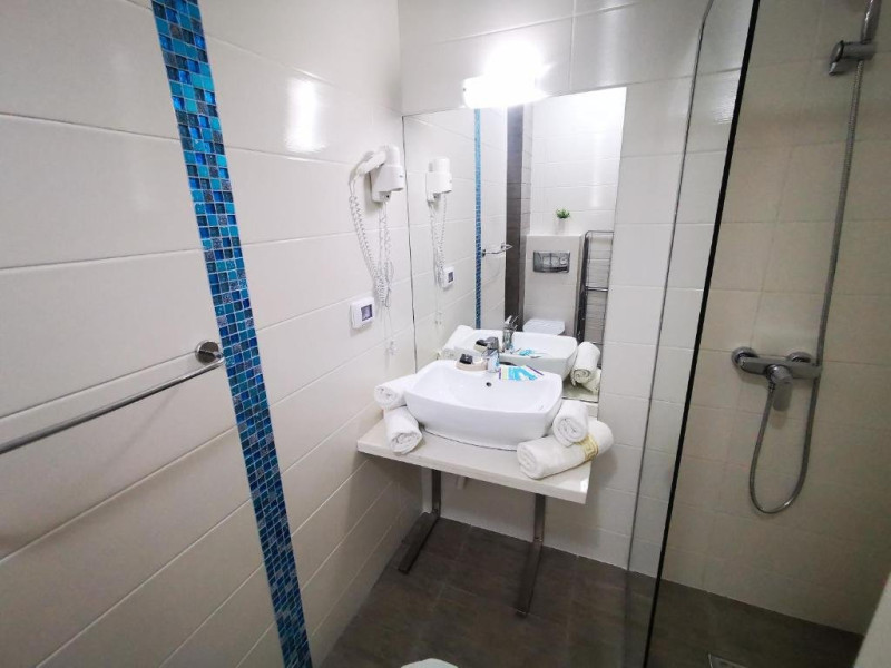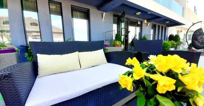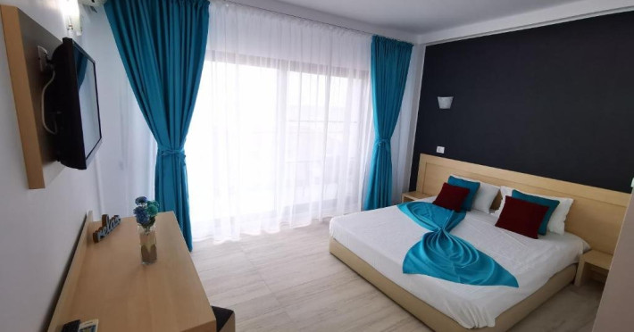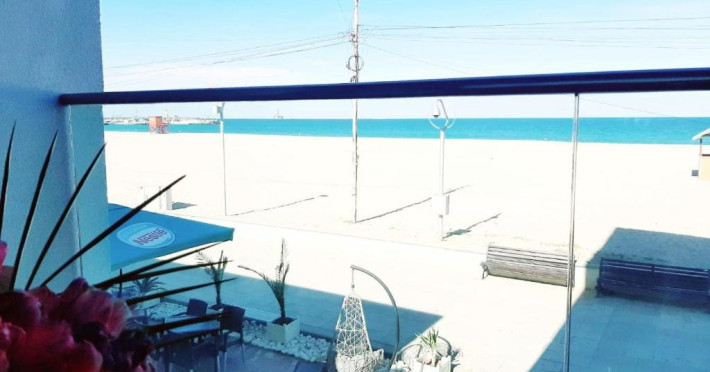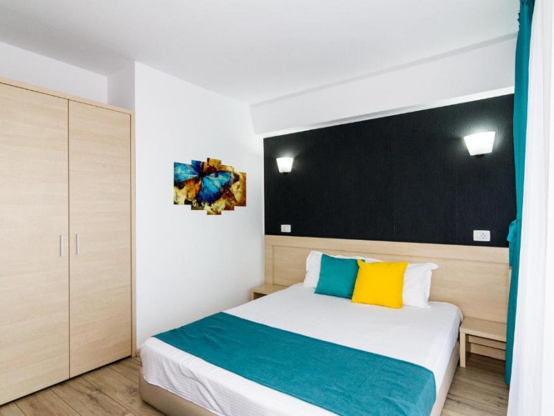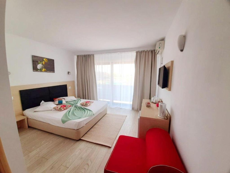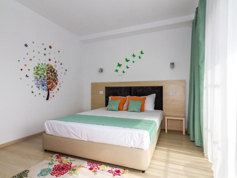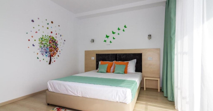 Un Apartament vedere la mare: Are ca suprafata aproximativ 40 45Mp si este format din 2 camere decomandate Living cu canapea extensibila O chicineta cu cuptor microunde, frigider mare, filtru cafea, fierbator, vesela completa - DOAR pentru preparate usoare. NU SE GATESTE Un dormitor spatios cu pat matrimonial O baie spatioasa cu cabina de dus.