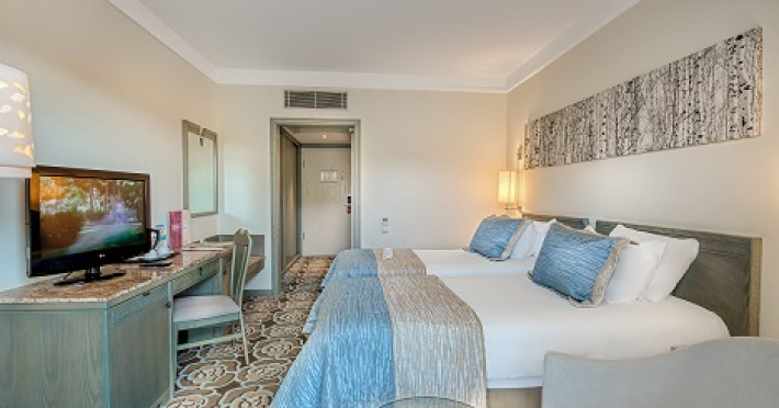 Pe langa restaurantul principal, hotelul detine si restaurante a la carte cu specific italian, francez, mexican si chinezesc. De asemenea o patisserie este disponibila in cladirea principala, unde turistii se pot bucura de o gama larga de deserturi. Cele 3 piscine exterioare sunt dotate cu sezlonguri, umbrele de soare si este si un bar disponibil. Plaja este in imediata apropiere a hotelului, este o plaja cu nisip si dispune si de un ponton. Copii au si ei acces la piscina exterioara, 3 topogane acvatice, spatiu de joaca si miniclub.