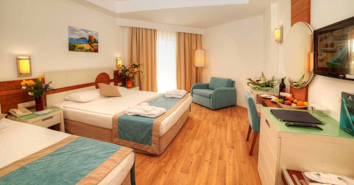 Toate camerele au baie cu cada , WC , telefon , seif , minibar , difuzare prin satelit , TV , uscător de păr , aer condiționat central. Toate camerele au balcon