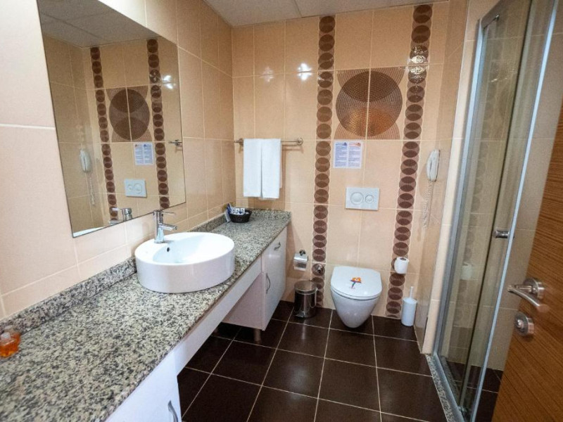 Camerele de la Cenger Beach Resort Spa au aer conditionat, TV si balcon. Fiecare baie are dus si toaletă.