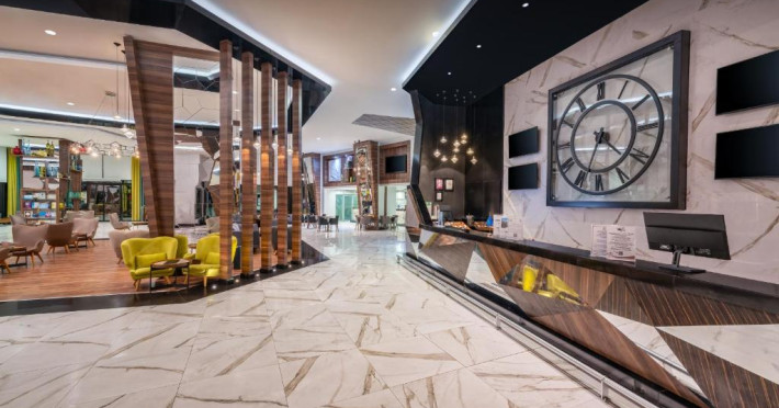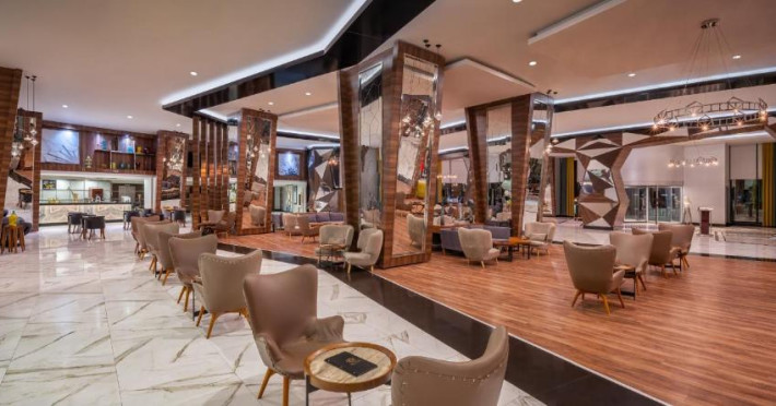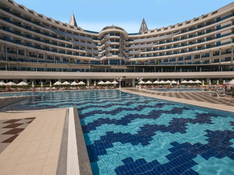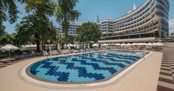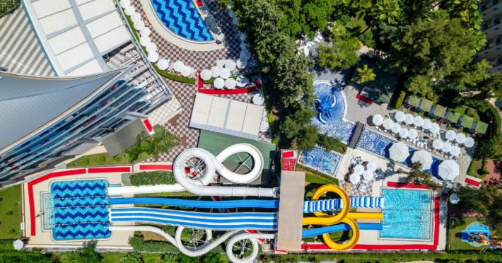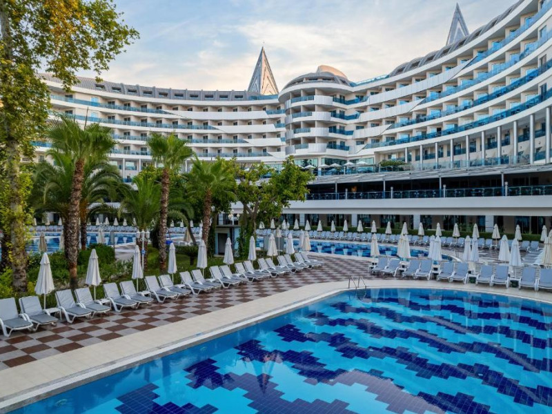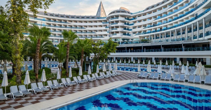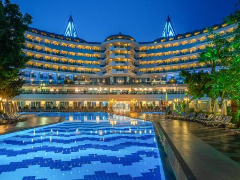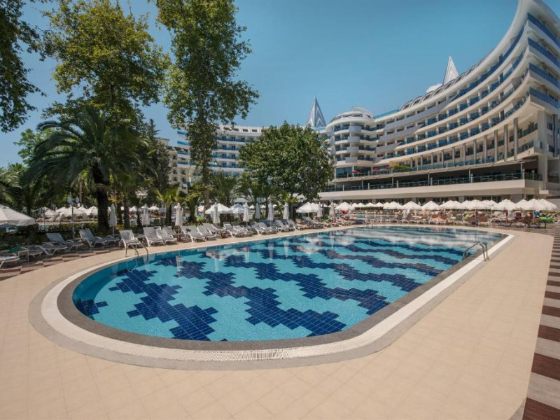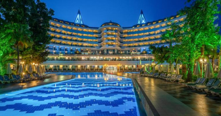 Botanik Platinum Hotel se află pe malul mării in Okurcalar și oferă cazare de 5 stele, un centru de fitness, o grădină și o zonă de plajă privată. Această proprietate include room-service, precum și un restaurant, un parc acvatic și o terasă. Acest hotel include o piscină in aer liber, o piscină interioară, club de noapte și un club pentru copii.