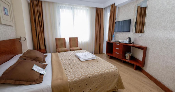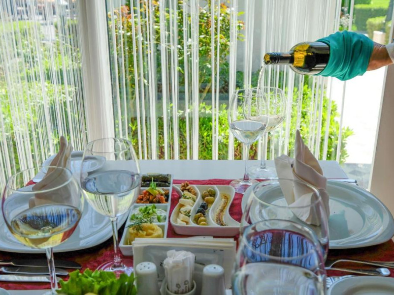Restaurantul oferă specialităti din Antalya si un meniu variat de preparate internationale clasice. Puteti lua masa in aer liber pe terasa mare de la piscină sau la barul panoramic.