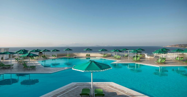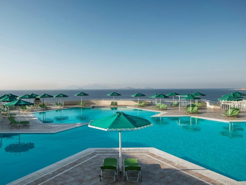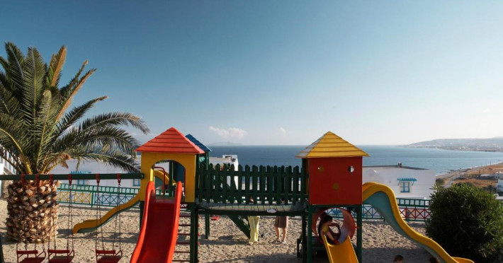 Mitsis Family Village, un hotel all-inclusive de 4 stele, se află la doar 200 de metri de plaja din Kardamena. Umbrele și șezlonguri sunt oferite atat langă cele 2 piscine exterioare, cat și pe plajă.
