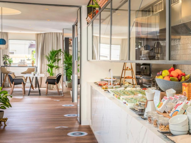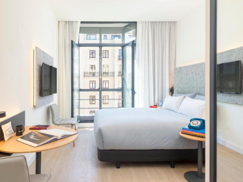 Cazarea oferă un mic dejun continental sau tip bufet. Oaspeții se pot bucura de terasa hotelului, care are vedere la animata Gran Vía de mai jos. Printre facilitățile acestei proprietăți se numără o recepție deschisă nonstop și un serviciu de concierge.