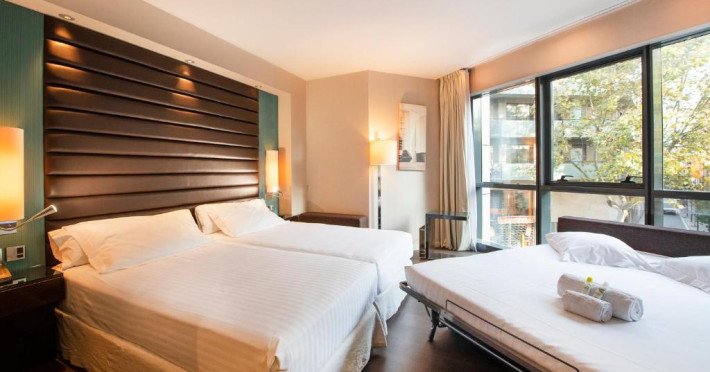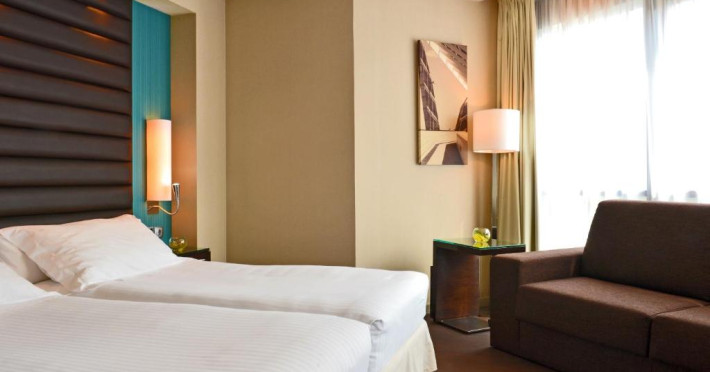 Pestana Arena Barcelona se află la mai putin de 5 minute de mers pe jos de centrul de expozitii Fira si de Plaça Espanya din Barcelona. Proprietatea pune la dispozitie o sală de gimnastică, o saună, precum si camere moderne cu aer conditionat si internet gratuit prin cablu. Unele unităti de cazare oferă acces gratuit la sala de conferințe Maritimo, cu o capacitate de pană la 12 persoane, in care pot fi organizate intalniri private. Pestana Arena Barcelona se află la numai 3 minute de mers pe jos de centrul comercial Las Arenas si la 8 minute de mers pe jos de gara Sants. Pe bulevardul Las Ramblas se poate ajunge in 5 minute, luand metroul din statia Plaza Espanya. Camerele au un decor elegant si podea cu parchet. Toate includ birou, meniu de perne si TV LCD cu canale prin satelit. Restaurantul hotelului serveste preparate mediteraneene si are terasă. De asemenea, proprietatea pune la dispozitie un bar care oferă gustări si băuturi. Micul dejun include si preparate fără gluten.