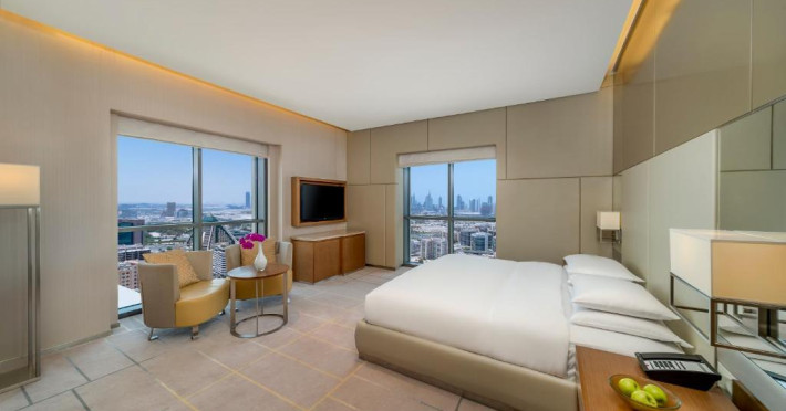 Oferind vedere la Khor Dubai sau la orizontul orașului, camerele au aer condiționat cu control individual și facilități pentru prepararea de cafea/ceai. Toate camerele au cabină de duș cu efect de ploaie, cadă separată, papuci și articole de toaletă gratuite. Oaspeții au la dispoziție o cutie de valori.