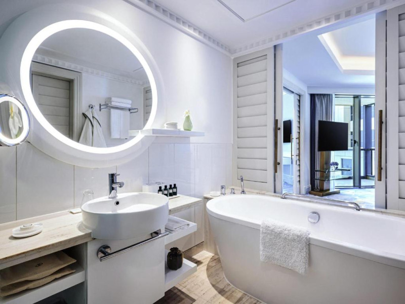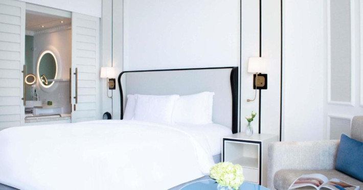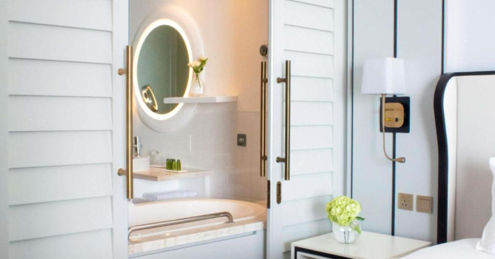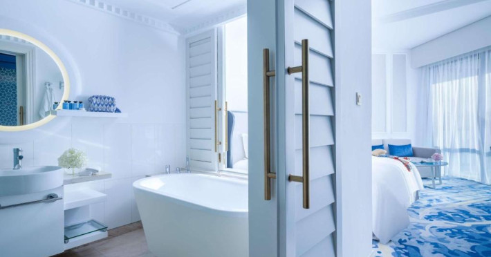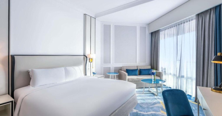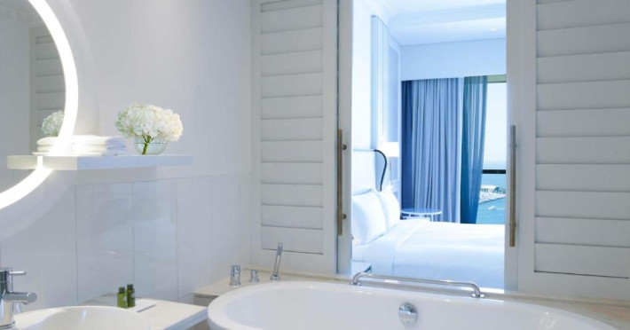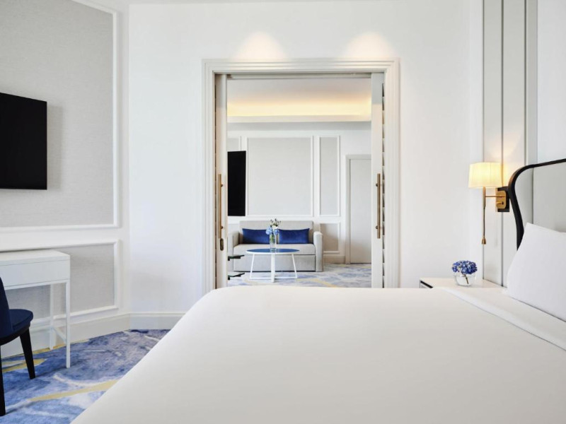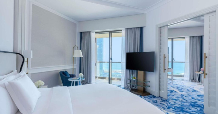 Camerele si suitele spatioase au mobilier modern si balcon privat cu vedere la Golful Arabic. Toate camerele sunt dotate cu TV cu ecran plat modern, sistem audio Bose si minibar.