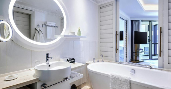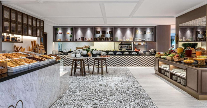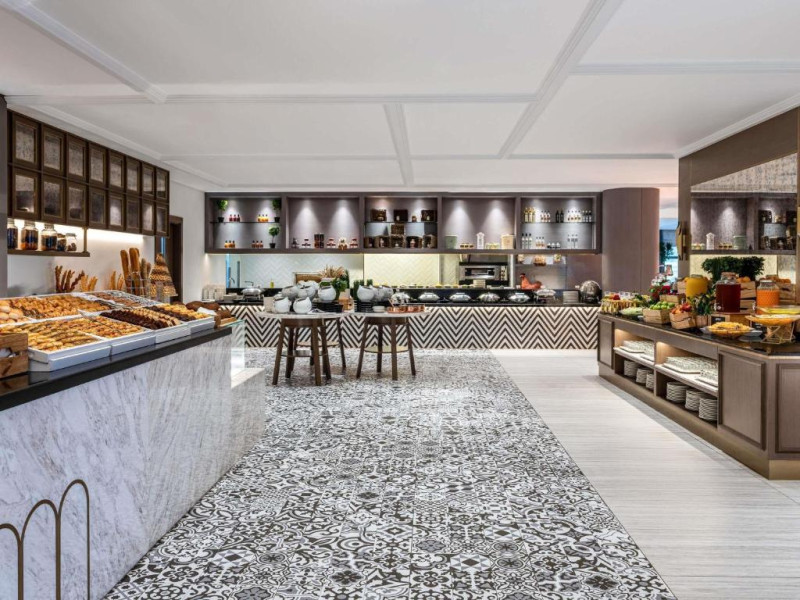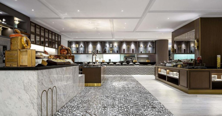 Oaspetii au la dispozitie diverse optiuni de luat masa, printre care A.O.C. International Buffet si Plantation Brasserie, Bar & Terrace, care oferă preparate hrănitoare si deserturi apetisante, precum si băuturi răcoritoare, gustări si narghilea la Infini Pool Lounge, cu vedere la mare.