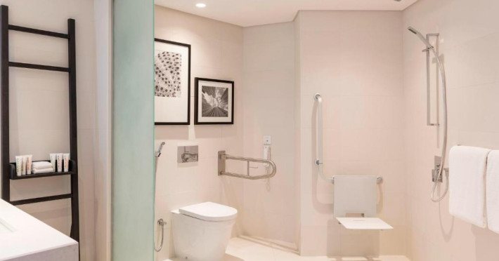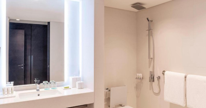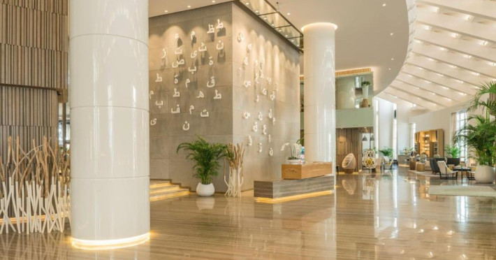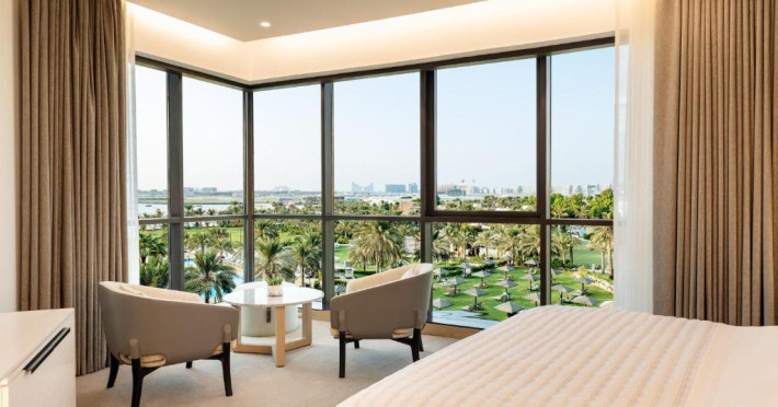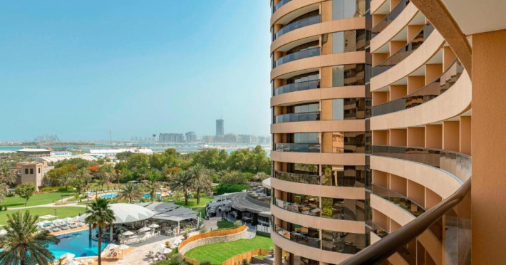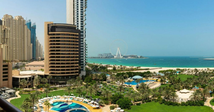 Acest complex de 5 stele se află la doar o scurtă plimbare de JBRC si oferă vedere la Golful Arabiei si 14 restaurante și baruri internaționale. Centrul spa cu tematică romană are saune si 5 piscine tip hamam. Există WiFi gratuit.